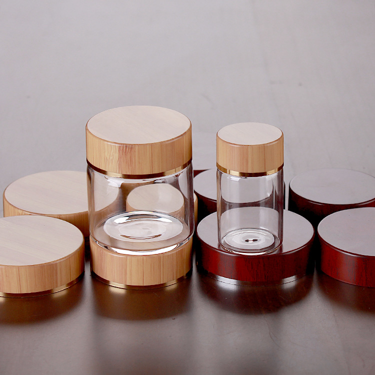外装デザイン厚い実木竹蓋50ml 100mlガラス空瓶小さな缶入り透明円形密封瓶