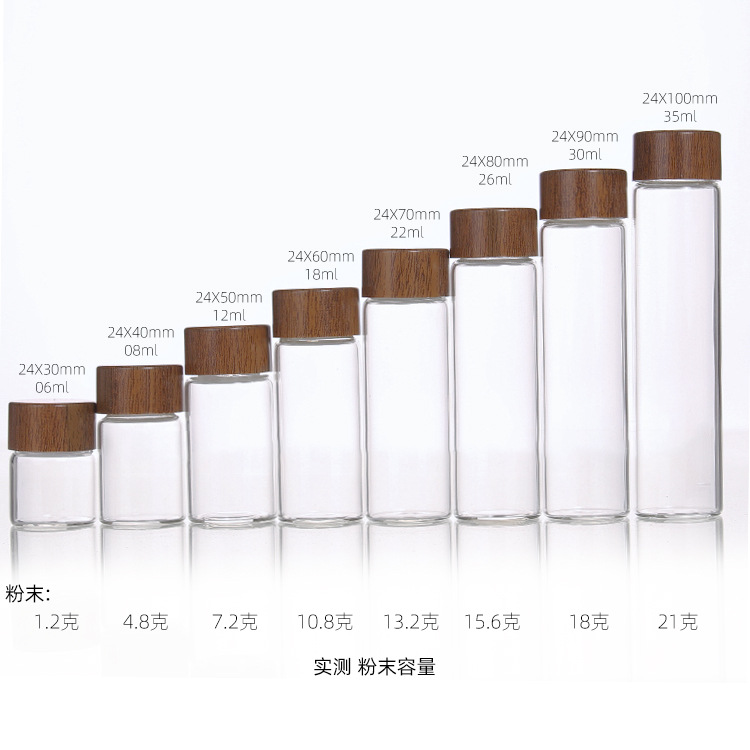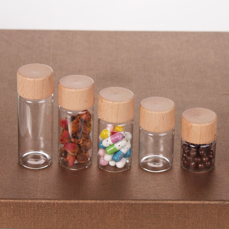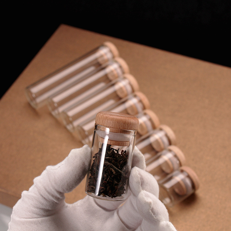 3cm直筒瓶密封ゴム付木蓋泡茶分注瓶の細長い透明展示分注ガラス瓶の現物