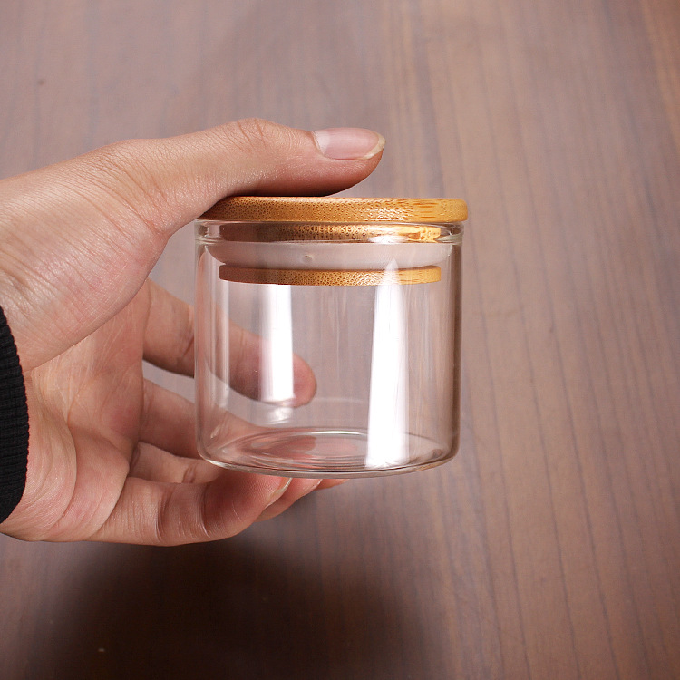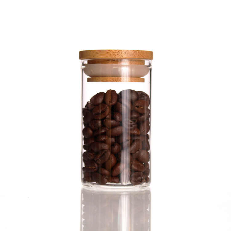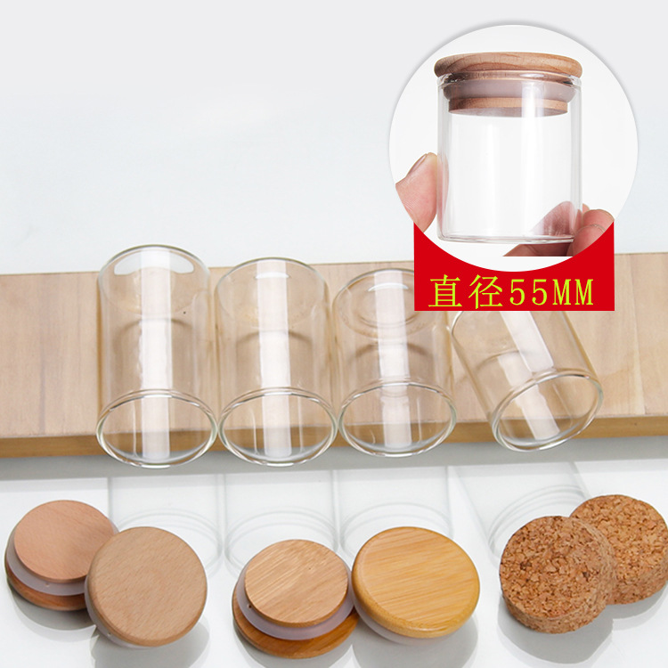 クロスボーダー選品直径55mm直口竹蓋高ホウ素シリコン透明収納ガラス瓶coffee bottle