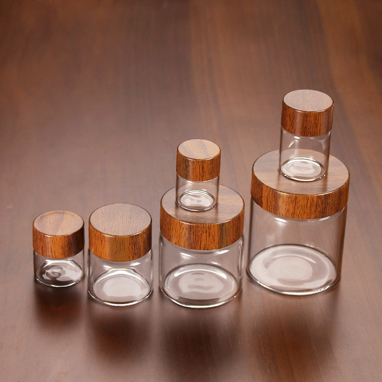 小さなボトルのお茶のストレージ1g2g3g 5g木製の蓋ガラスボトル春のお茶白いお茶の包装への切り株の切り株