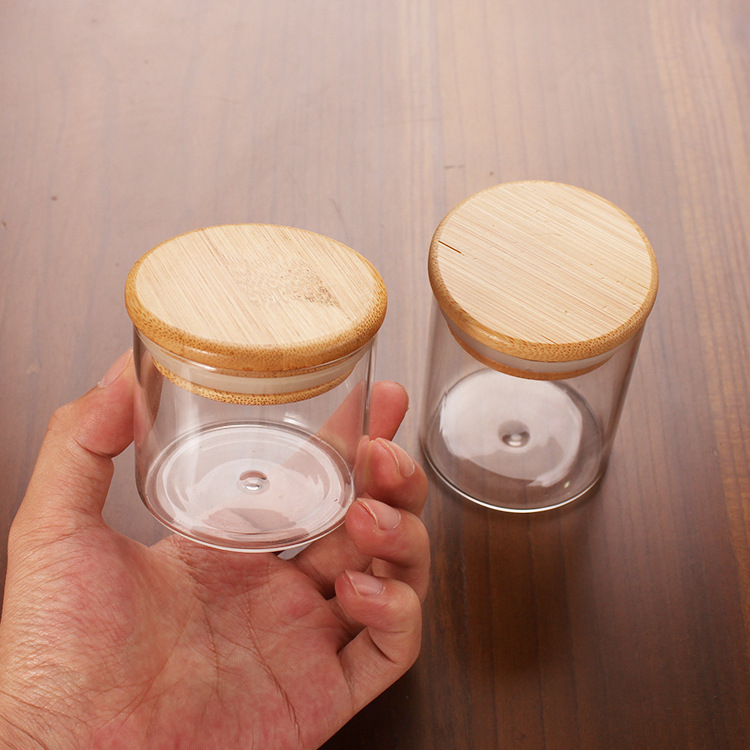 クロスボーダー65mm直口ガラス瓶竹蓋付き彫刻ロゴ茶ギフトボックス包装ミニ収納缶