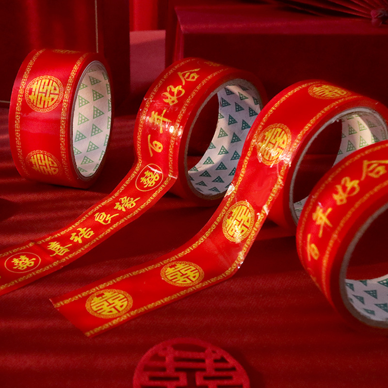 新商品卸売り結婚喜字テープ大赤色高粘度シールテープ結婚式専用ウェディング用品大気
