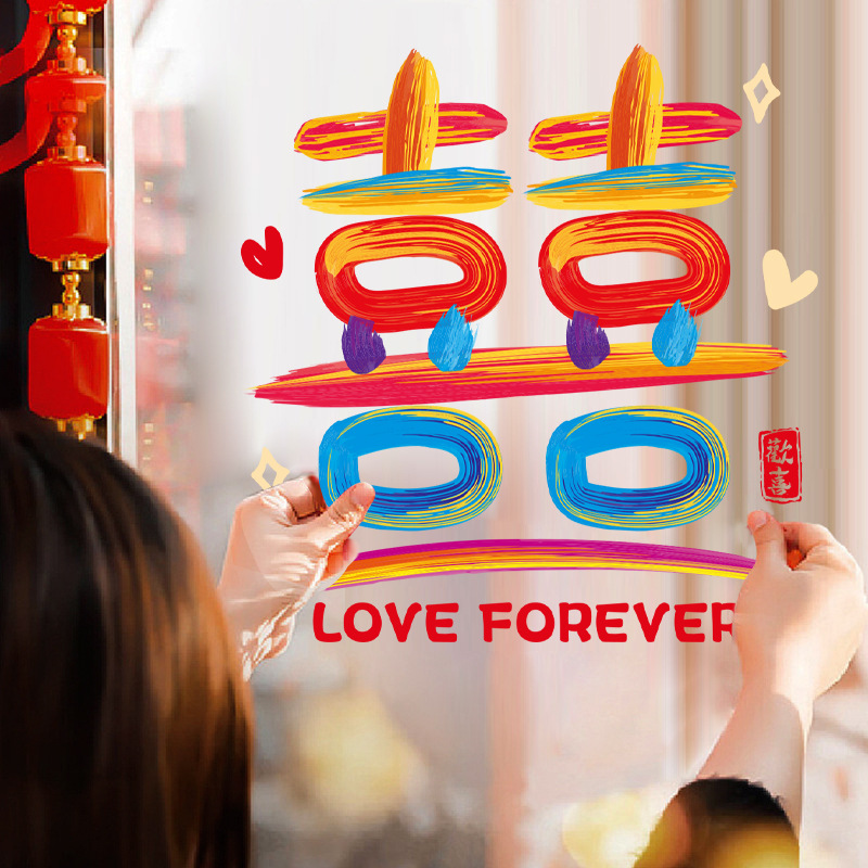 ドーパミン結婚式専用「喜」ステッカー レインボー静電ステッカー 結婚式の部屋の装飾 窓ガラスの装飾 結婚準備用品