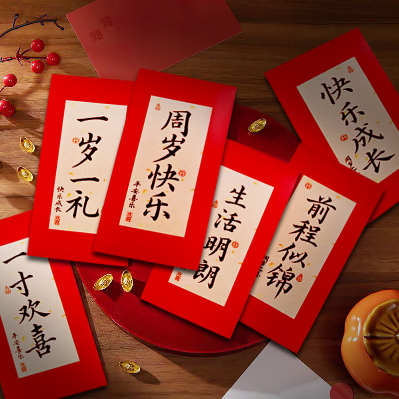 新款中式书法宝宝满月百日之喜周岁生日一岁一礼红包利是封创意