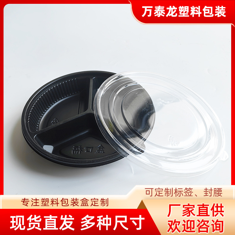 使い捨ての三格の弁当箱の外に出して箱を詰めて厚い多格の食事皿の分格のファーストフードの弁当箱の果物を切って箱を切ります。