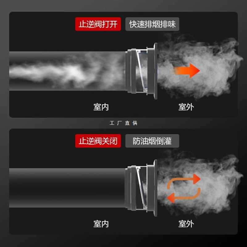 ✅ キッチン煙道逆止弁、レンジフード排気管逆止弁、浴室逆止弁、一方向煙逆止弁