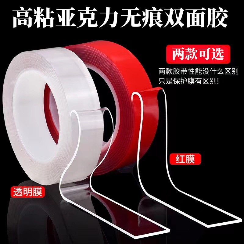 ナノ両面テープ赤膜透明アクリルテープ強粘無痕防水耐高温魔力テープ