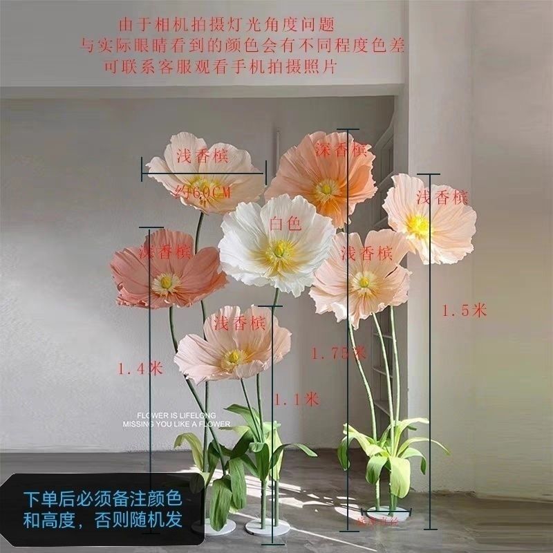 巨大なペーパーアートフラワーポピーハンマーペーパーフラワー屋外結婚式造花アレンジメントフラワーアート手作り床置き造花