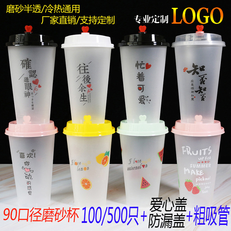加厚磨砂注塑杯90口径一次性果汁饮料奶茶杯子商用带盖食品级家用