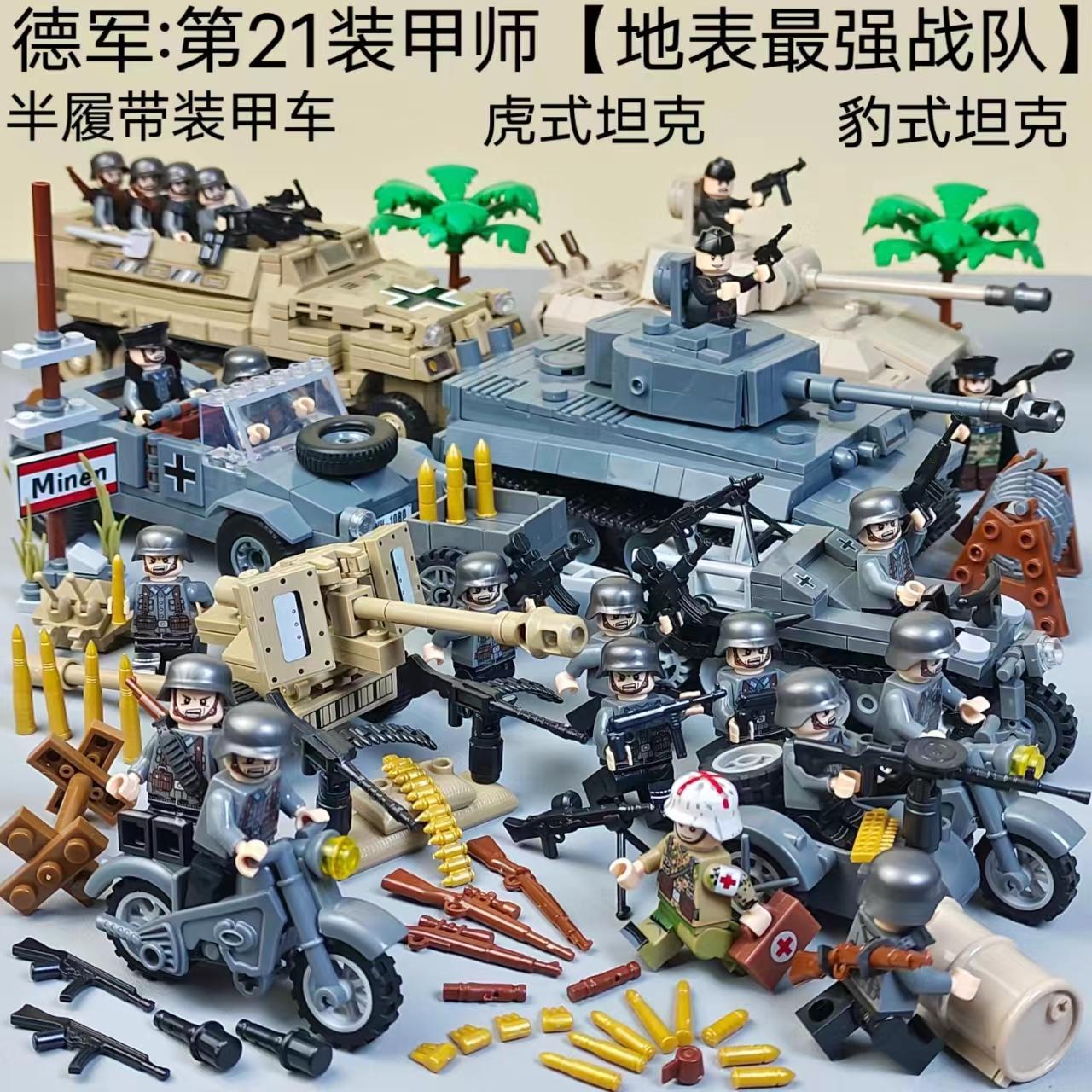 第二次世界大戦のタイガー戦車ビルディングブロックドイツのハーフトラック装甲トラックソビエト対空砲廃墟シーン組み立ておもちゃ
