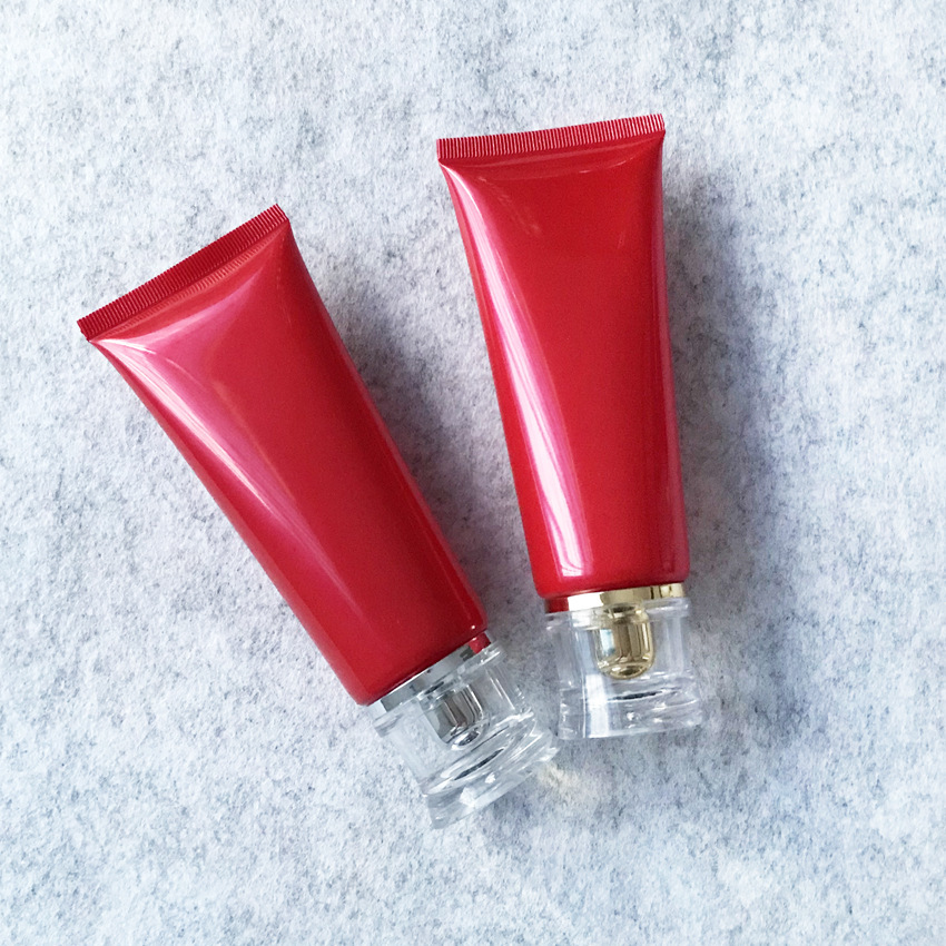 【現品】100g赤色化粧品ホース100mlアクリル高級包材洗顔料分注空瓶
