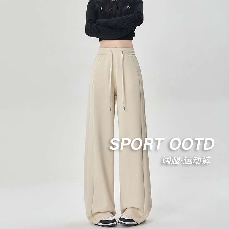 やせて見える衛ズボンの女性の秋の新型の小さい人は縄を引いて色のカジュアルな広足のストレートなズボンにぶつかります。