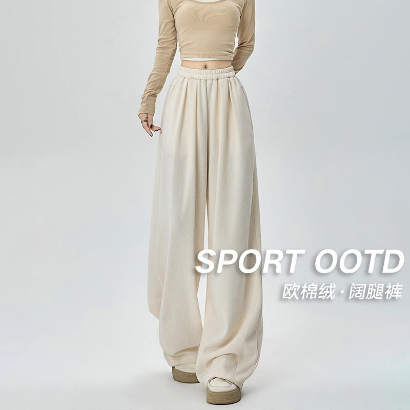 欧綿絨山本ズボン高腰広脚ズボンの女性筋理感がゆったりしています。