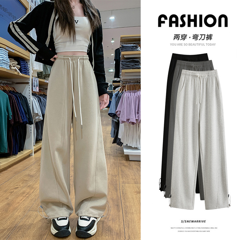 白い曲がりくねった刀の衛のズボンの2024の新型のまっすぐな筒の鎌のズボンの運動版のバナナの広腿のズボンの女性のゆったりしているカジュアルなズボン