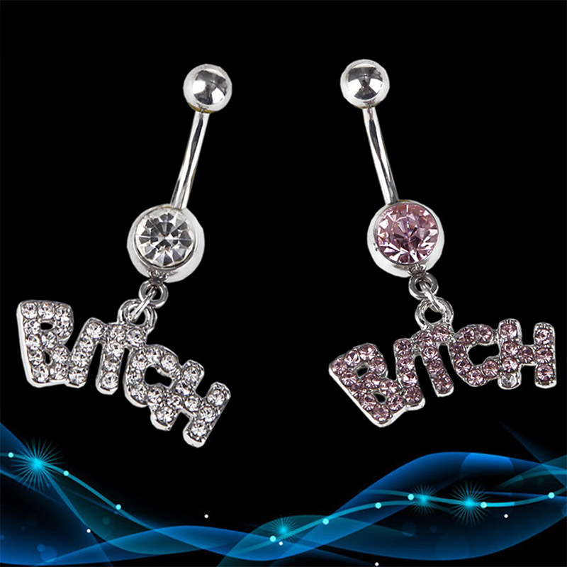 316lステンレスのへその釘にダイヤモンドを入れたピンクのアルファベットのペンダントのへそのボタンの穿刺アクセサリーのパンクのアクセサリーの卸売りの現物