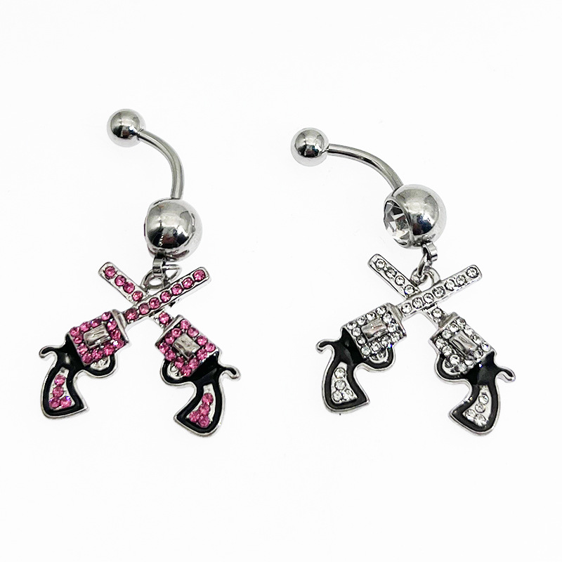 新しいタイプのダイヤモンドの両手の銃のペンダントのステンレスのへその輪のへその釘はへその装飾品を掛けます。