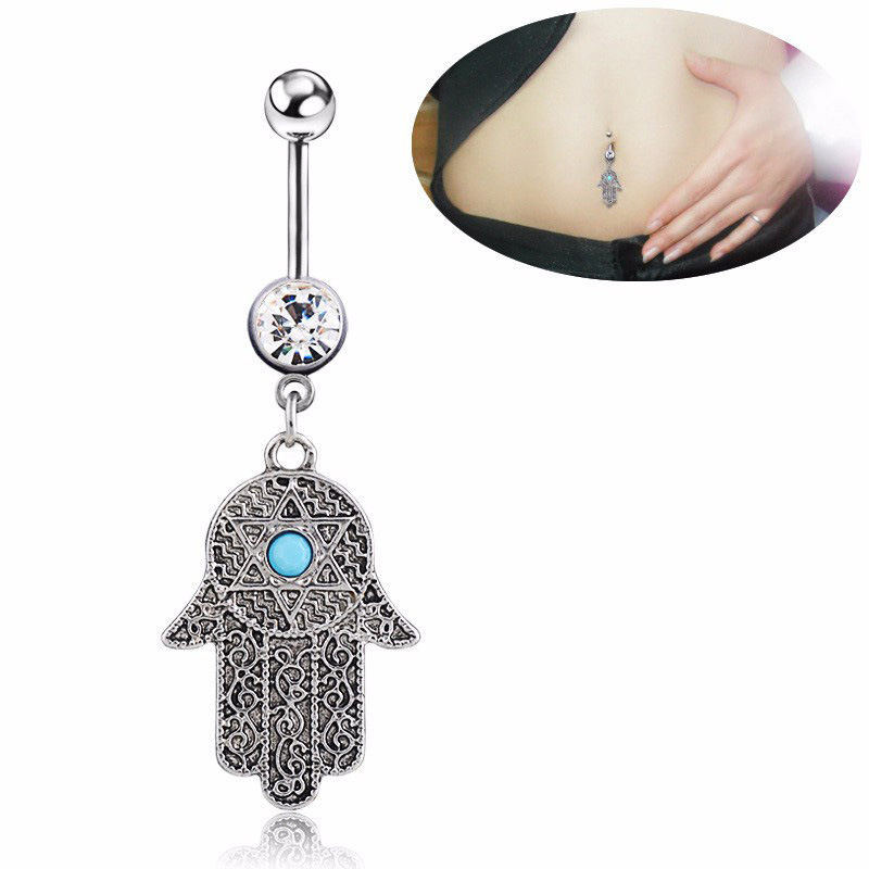 レトロな手のひらの緑松石のへその輪のへその輪の仏手のへそのボタンの穿刺の人体のアクセサリのアマゾンの穿刺のアクセサリ