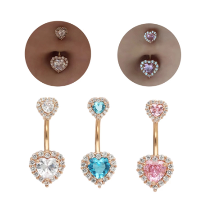 ステンレス1.6x10mmジルコンハート型臍釘穿孔アクセサリー卸売り