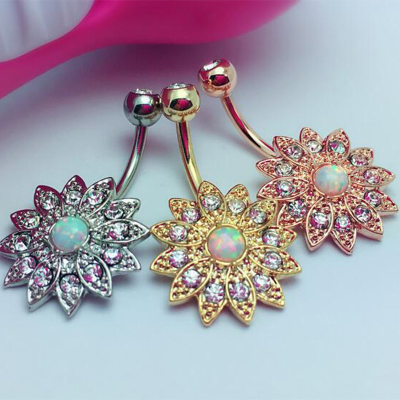 14gのファッションの太陽の花はダイヤモンドのへそを入れて人体の穿刺のアクセサリを掛けます。