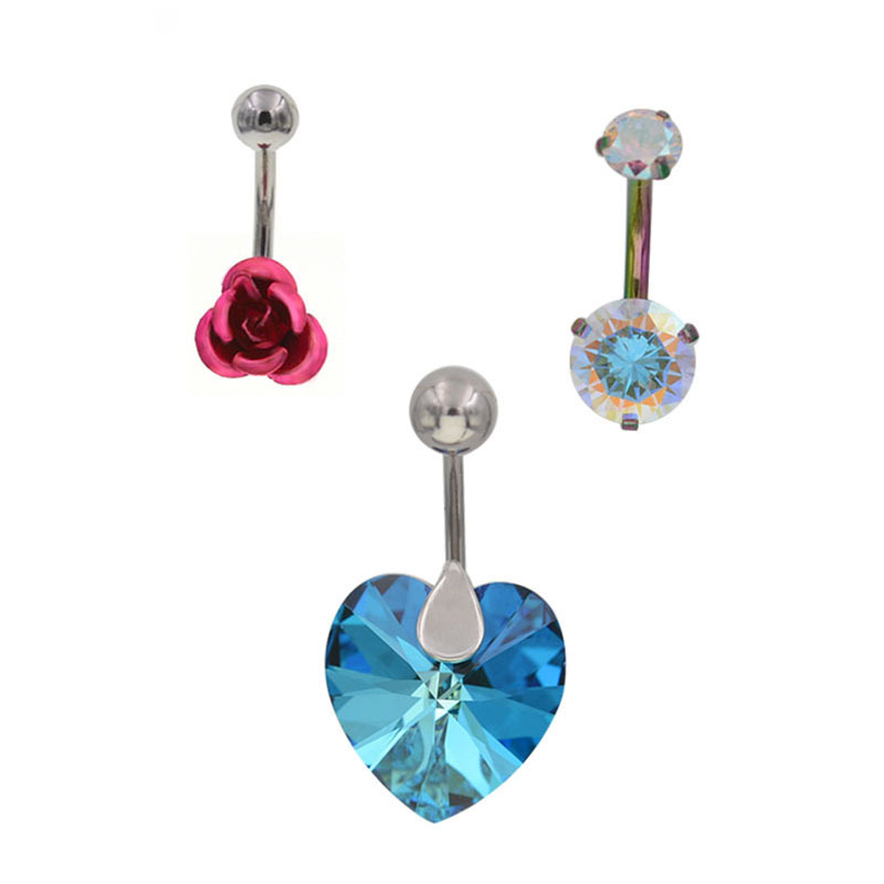 愛の水晶のへその装飾のへその釘のジルコンのへその輪の赤い花の体の穿刺のアクセサリ