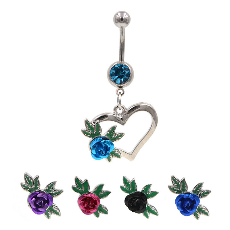新型ステンレス臍環ファッションロマンチックな愛バラへそボタンへそ環穿刺卸売り
