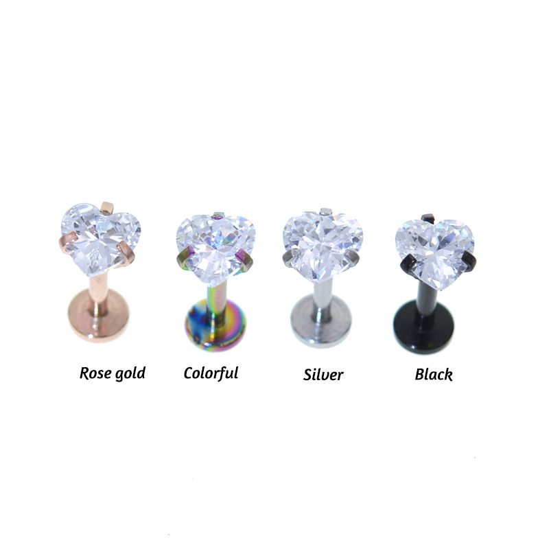 ステンレス桃心掴みジルコニウム唇釘3-5mm 1.2mm棒粗穿刺耳骨釘耳屏器3Aジルコン