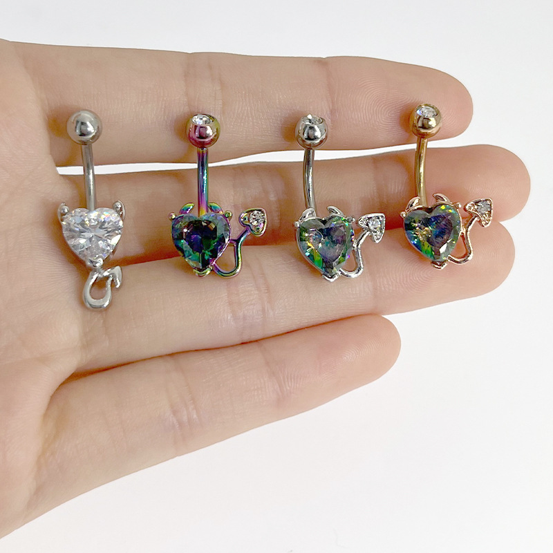 新型悪魔の牛の角のへその釘の14gの純粋なステンレスのジルコニウムのへその輪の卸売りを入れます。