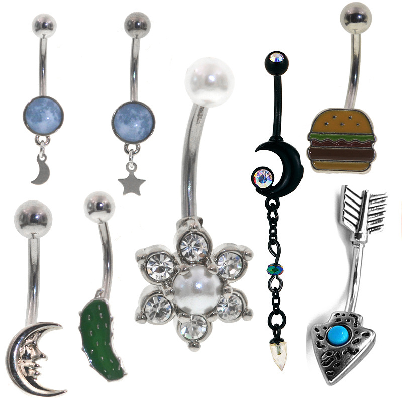 ステンレスの多種の形の矢印真珠の月のへその輪のへその針の穿刺のアクセサリのアマゾンは国境を越えます。