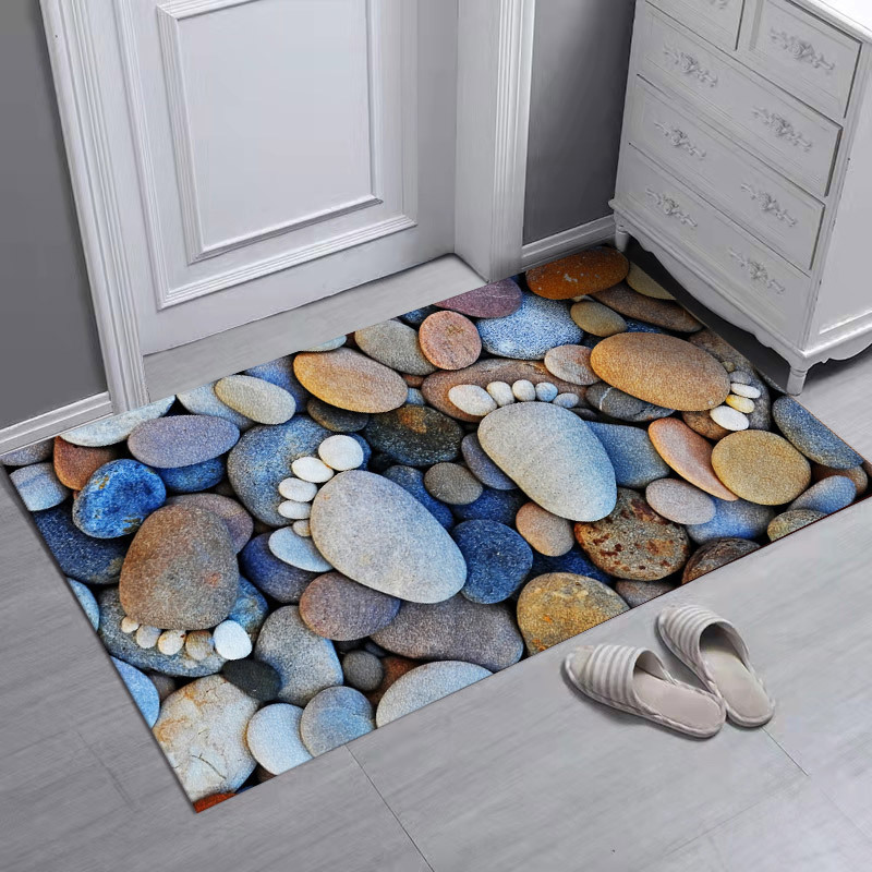 クロスボーダー爆品希音TEMU石プリントドアマット吸水滑り止め足マット寝室部屋カーペットマット