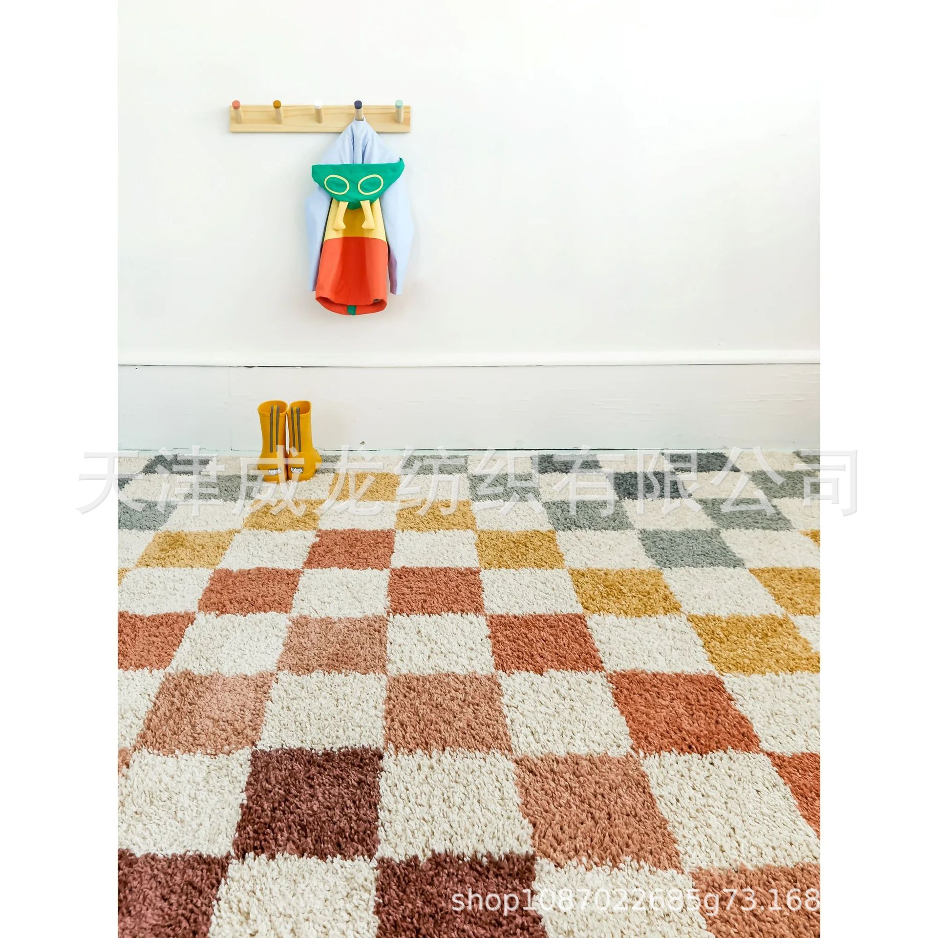 クロスボーダーアメリカ長毛レインボーチェック柄屋内カーペットマイクロファイバー2025新しい汚れにくい家庭用フロアマット