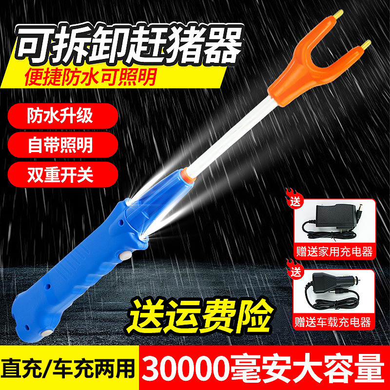 豚は豚を追う器の電気で豚を追う器の電気で豚を追う器の電気で豚を追う棒の携帯式の取り外し可能な棒をたたいています。