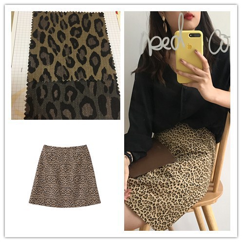 現物は全綿の人の字を斜めに厚くして、新しいヒョウの紋様のプリントの布の風衣のカジュアルなジーパンのスカートの生地を提供します。
