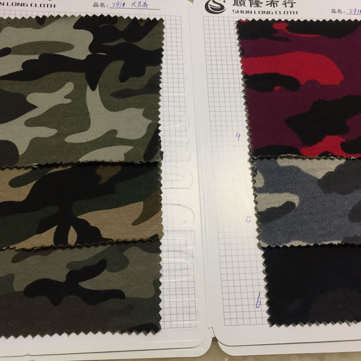 秋冬モデルの厚手のガードルの迷彩プリントの精練32本の綿の大きい毛輪のガードルの迷彩320gニット