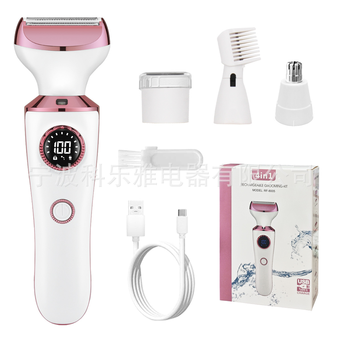 2023国境を越えた新製品の電気女性の毛剃り器四合一の毛剃り刀はデジタル表示のリチウム電池を持っています。