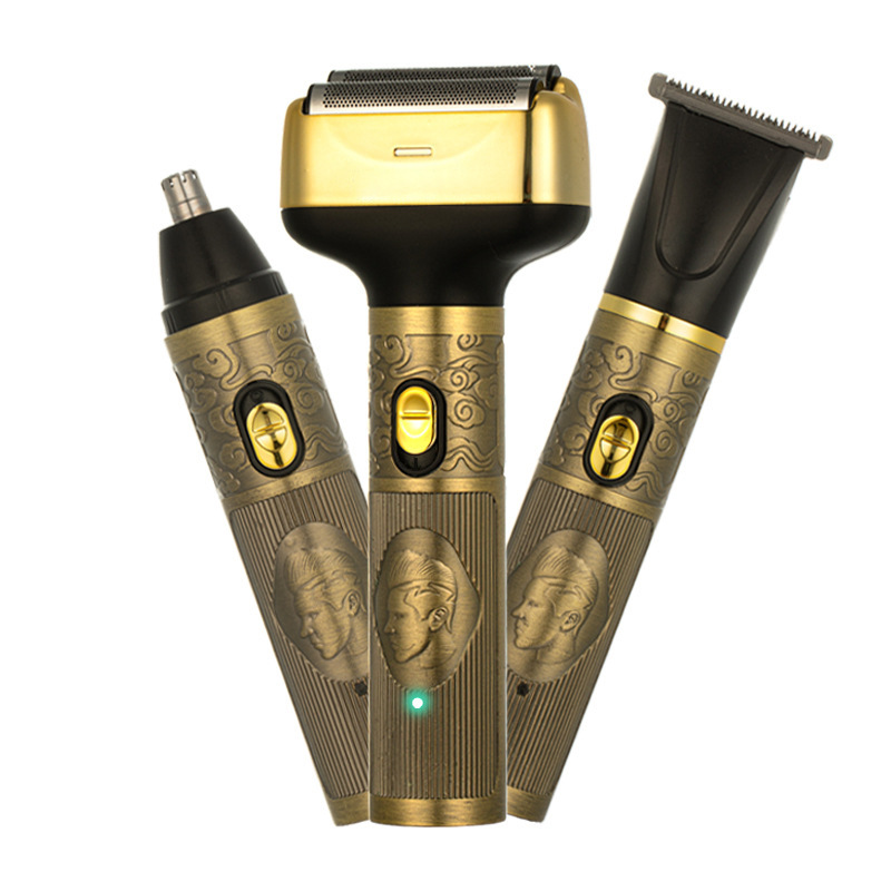 新型三合一電動往復式髭剃り鼻毛剪定器レトロ理髪剪定セット金属銅卸売り