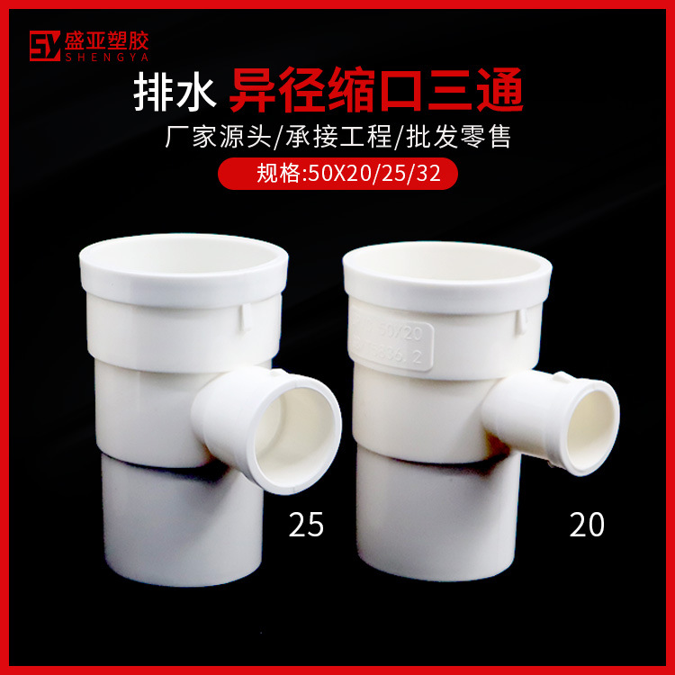 Pvc50変25内挿し三方50回転32異径三方下収縮変径40排水管異型収縮口部品