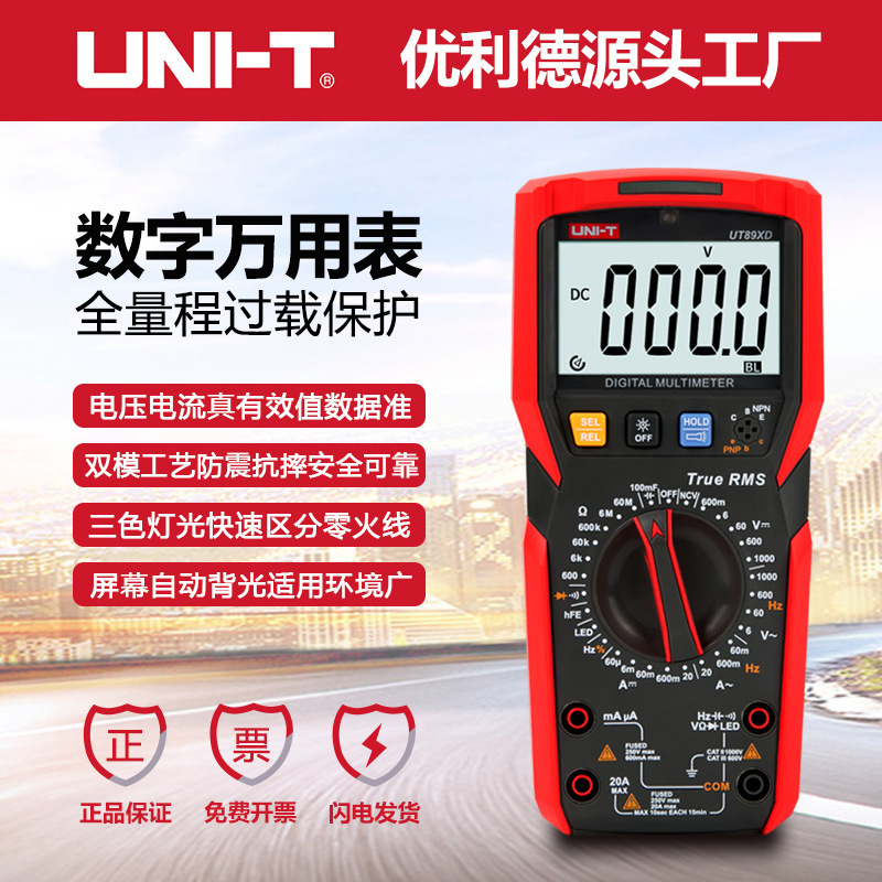 ユリッドUT89XDデジタル高精度マルチメーターデジタル表示万能メーター全保護LED測定防焼メーター