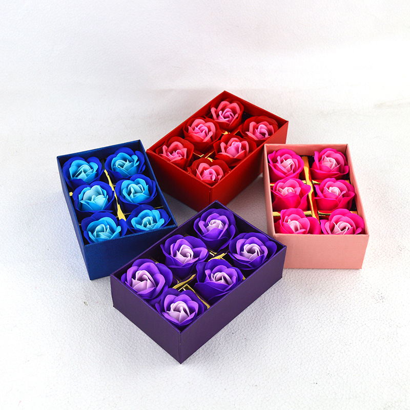 6輪のバラのギフトボックス、リボン付き、石鹸の花のギフト、母の日、工場直送、卸売、レトロ風ギフトボックス