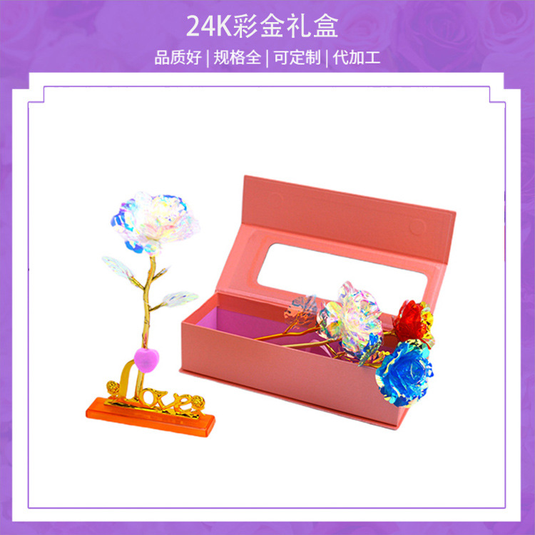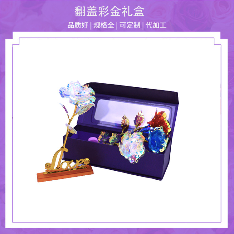 メーカー卸売り開窓紫24kカラーギフトボックス金箔花七夕バレンタインデーロマンチックなギフトボックス