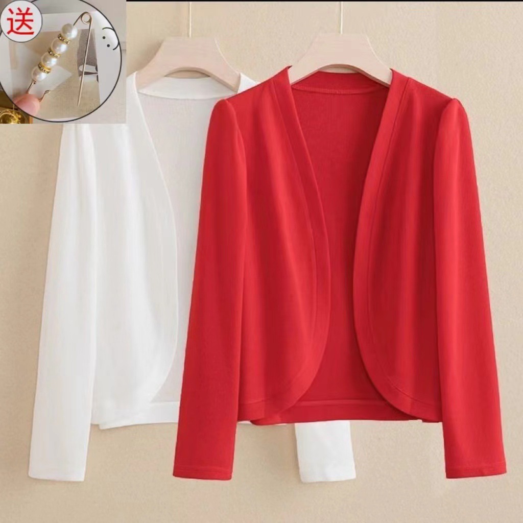 【ブローチを送る】高級アイスストールの女性の外にスカートの夏の薄いカーディガンの長袖の日焼け止めのショートコートを合わせます。