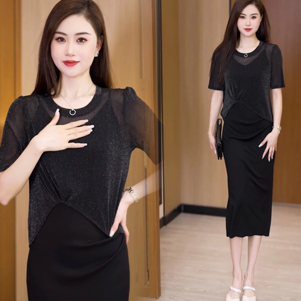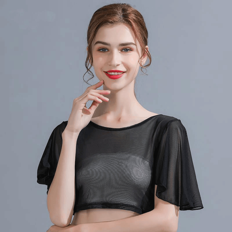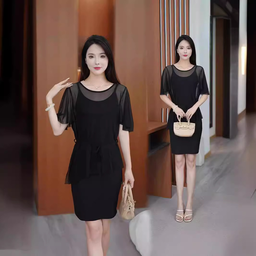 2024春夏アンドロメダ超薄透視網糸tシャツ丸襟半断飛半袖ブラウス女装