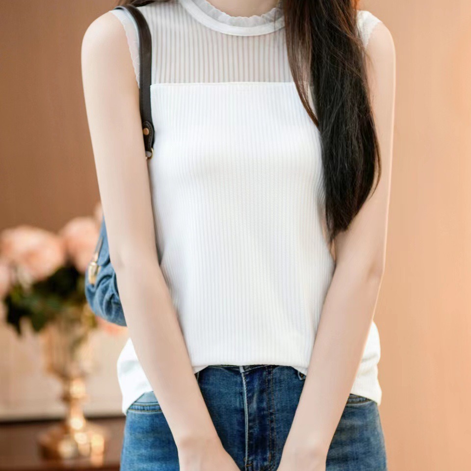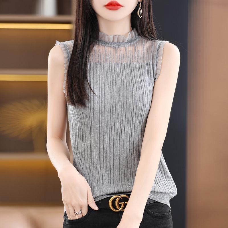 新商品のノースリーブのウールのメリヤスのレースのつなぎ合わせのスリムな純色のニットの女性のベストのファッションの春
