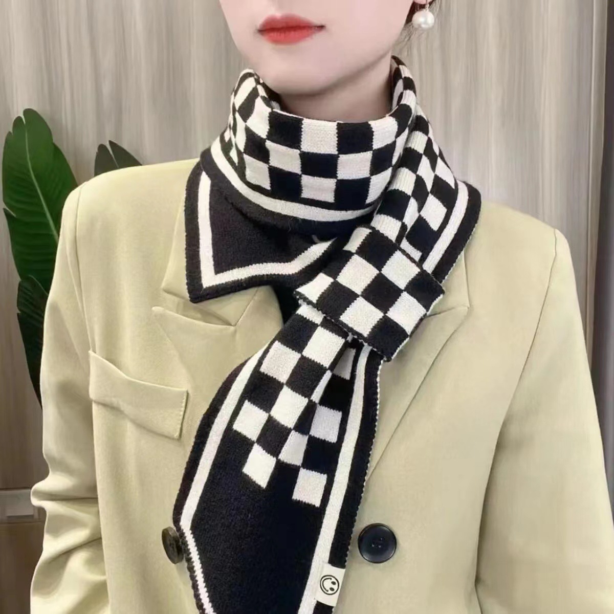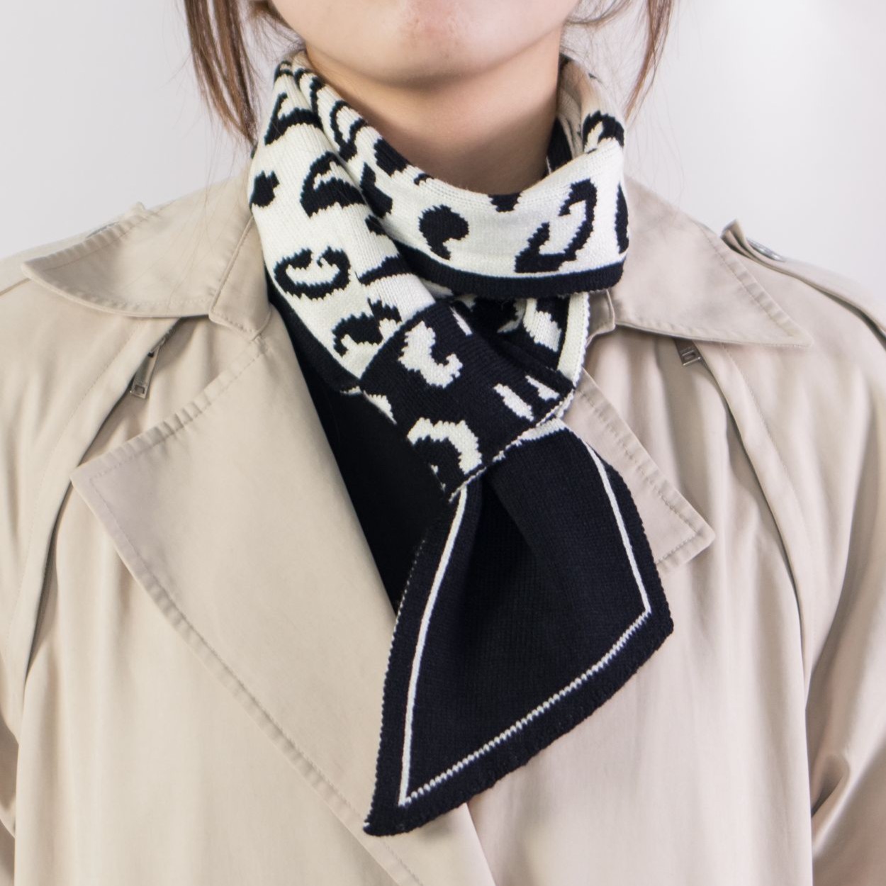 2023マフラー冬の女性の新型白黒クラシック保温百合韓国版高級感マフラー両面防寒