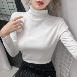 徳絨毛の半高襟の底のシャツの女性の冬の百合の修身のシャツの女性の保温の中で大きいサイズの上着を掛けてやせています。