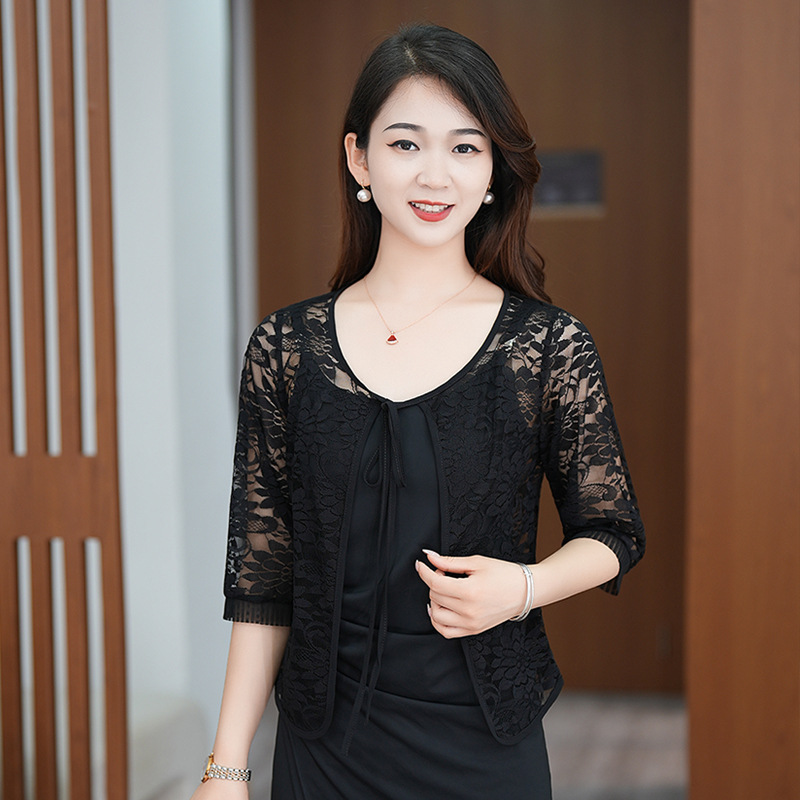 レースの小さいショールのカーディガンのコートは夏にスカートのチャイナドレスの外でお母さんの薄い通気性の日焼け止めのカーディガンに乗ります。