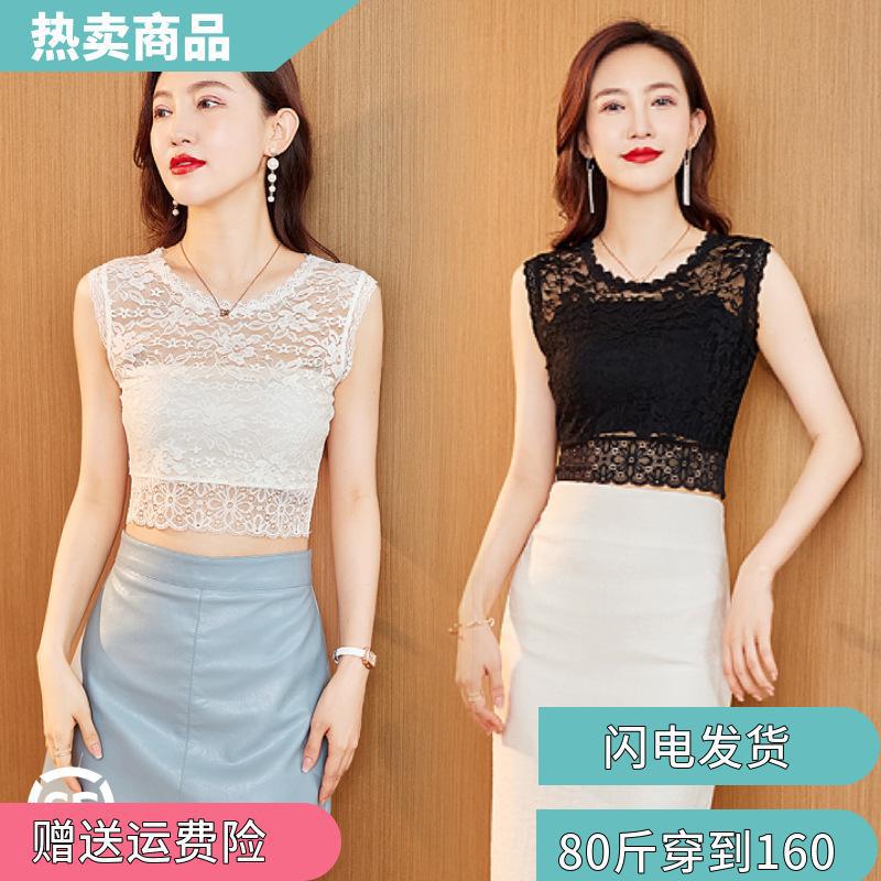 2023年春夏の新型木の耳元の袖なしの上着の透かし彫りのレースの底のシャツのメリヤスのベストの女性の中で掛けます。