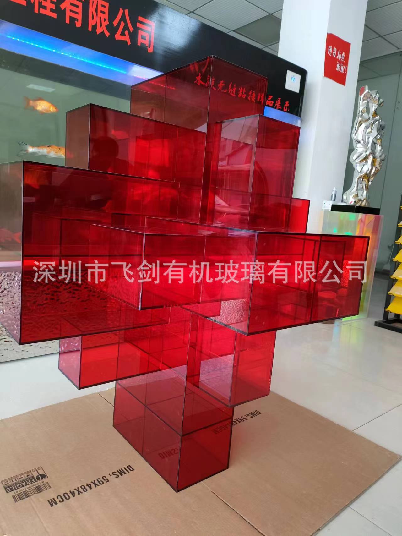 アクリル大型3d立体造形ブロック透明赤色置物道具源工場製作
