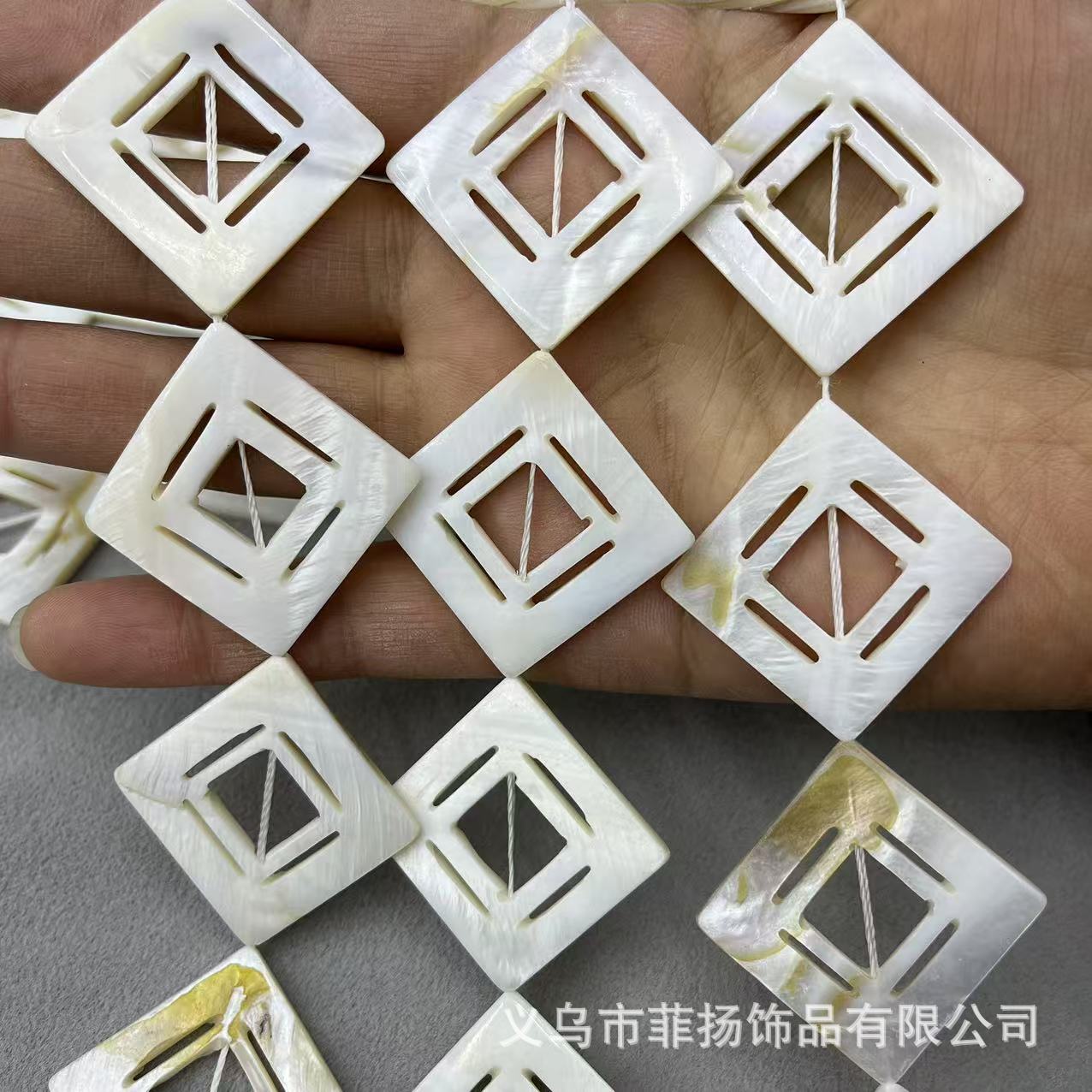 淡水貝貝殻20x30mm透かし彫り長方形貝殻DIY服飾ネックレスブレスレット部品卸売り