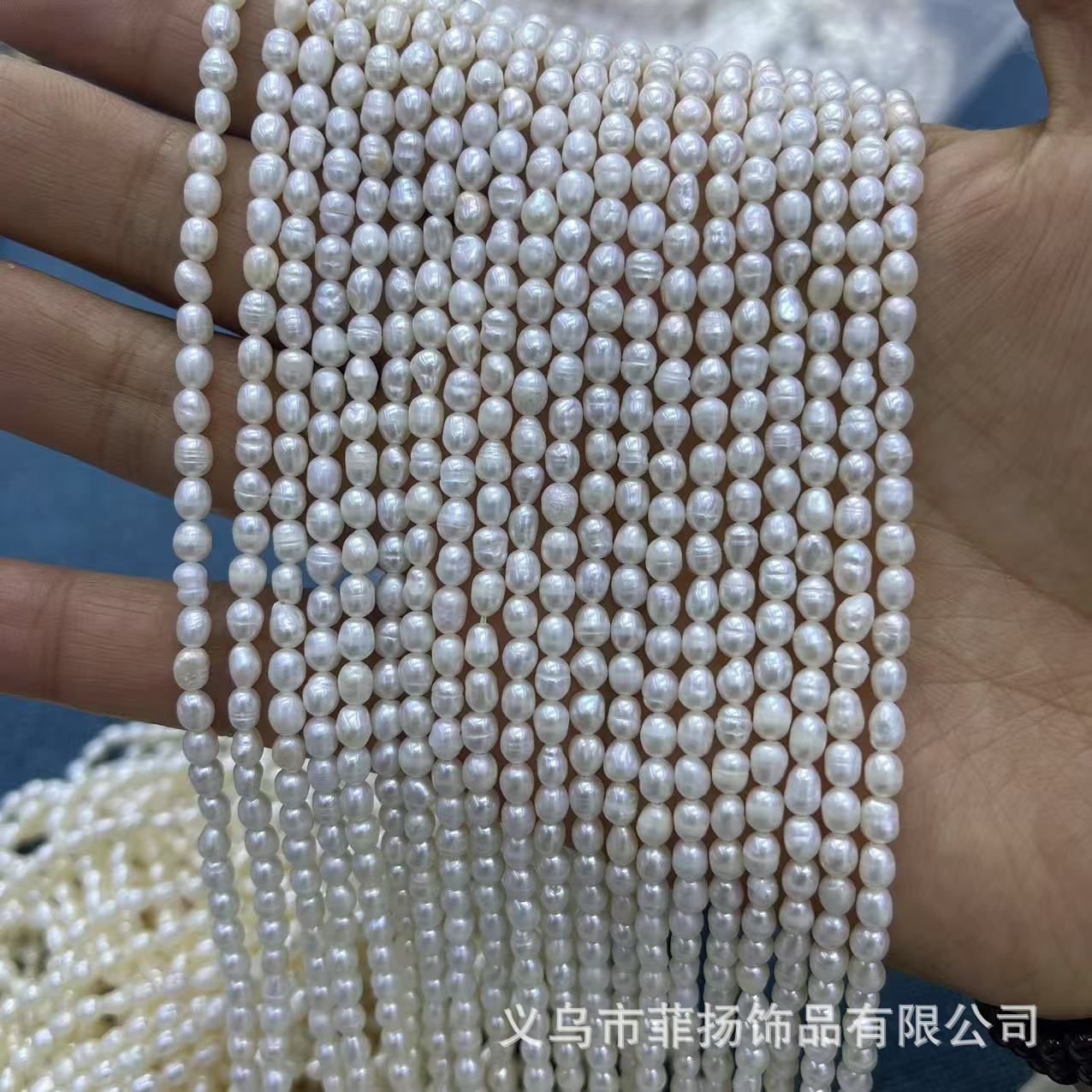諸及び淡水真珠3-4mm米珠米形ねじ真珠DIY服飾ネックレスブレスレット部品卸売り