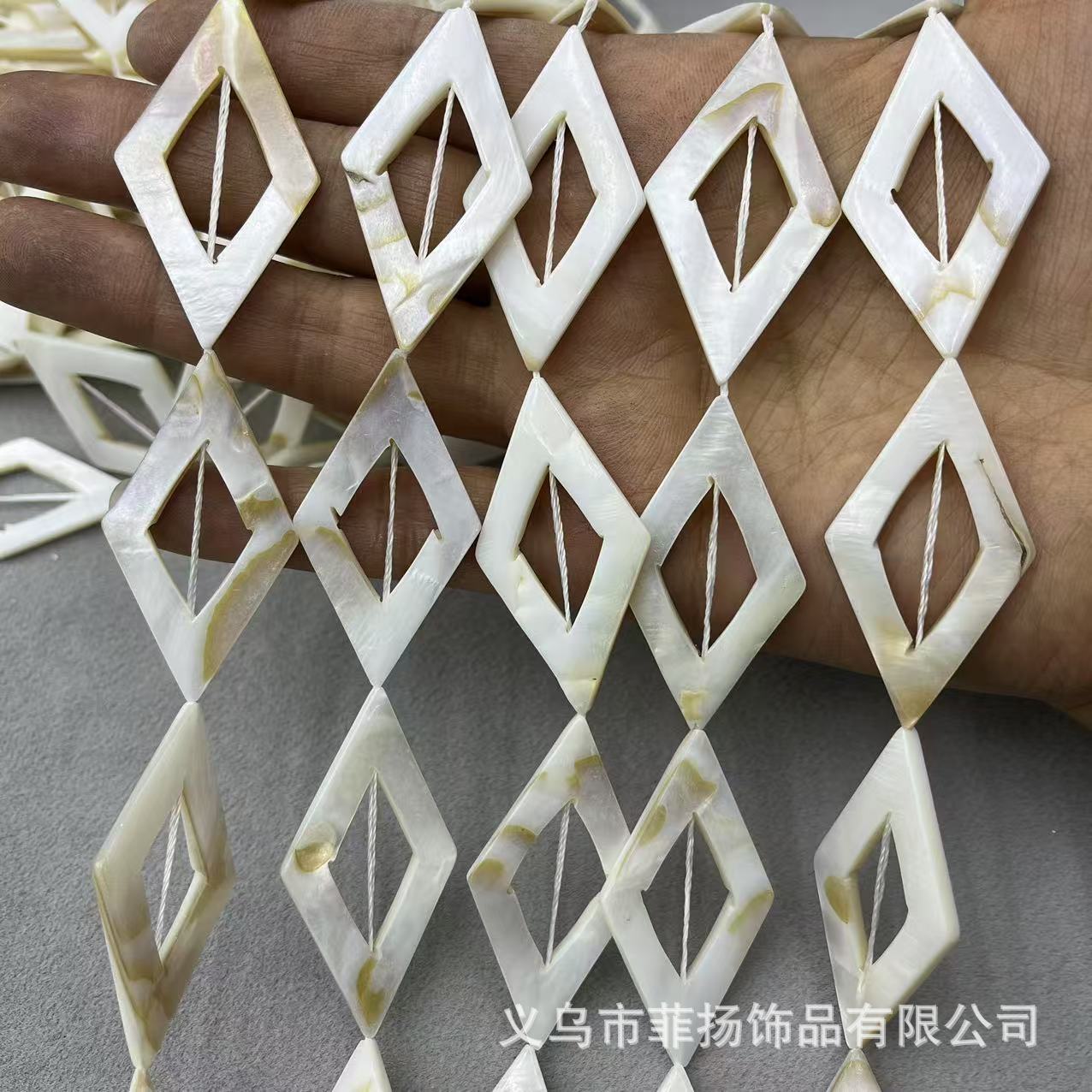 淡水貝貝殻25x45mm透かし彫りのダイヤモンドの幾何学模様の貝殻DIY服飾ネックレスのブレスレットの部品のロット